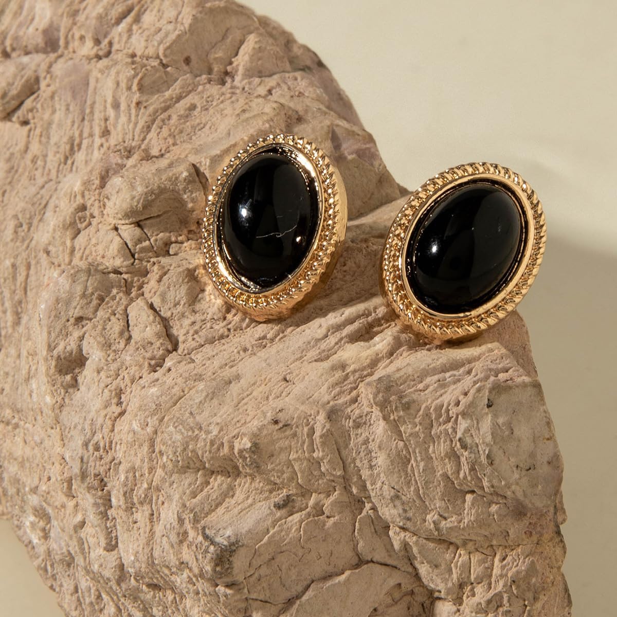 Indulge in the allure of vintage French sophistication with our exquisite jewelry set. Featuring stunning black oval gemstones nestled in 18K gold plated settings, this choker necklace and stud earring duo embodies timeless elegance. Perfect for those who appreciate refined style and enduring quality.