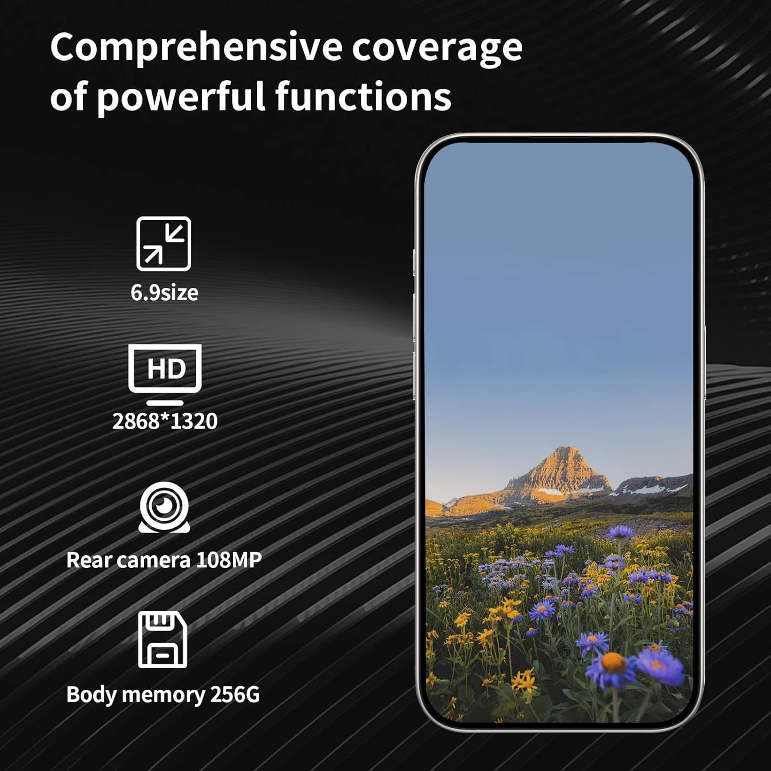 ❤️【6.9 HD Screen + Android 15.0 System】 The most advanced Android 15.0 system is paired with a 6.9 Ultra HD screen. This is an Android unlocked phone with a large screen, featuring a large perforated screen, high quality hot bending glass back cover, and a 5-point capacitive touch screen. Magnesium-aluminium alloy body and is unlocked by facial recognition and on-screen fingerprint for better protection of your privacy.