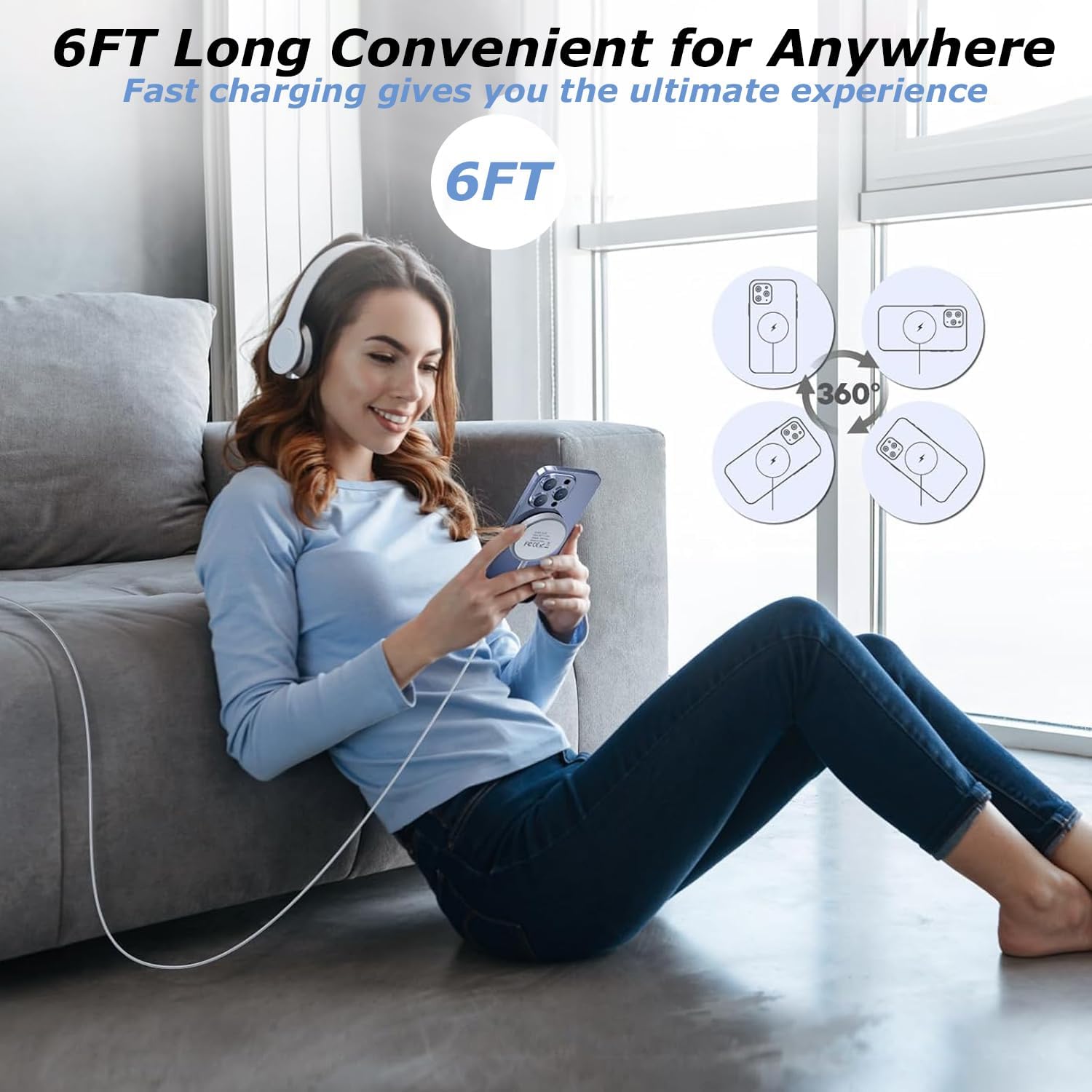 [ Strong Magnetic Alignment ]2Pack 6 Feet long magnetic charger pad equipped with an advanced magnetic array, the charger automatically aligns to the optimal charging position and holds your iPhone firmly in place.And mag-safe charger are convenient for charging at home,office or travel, you can charge for any scene