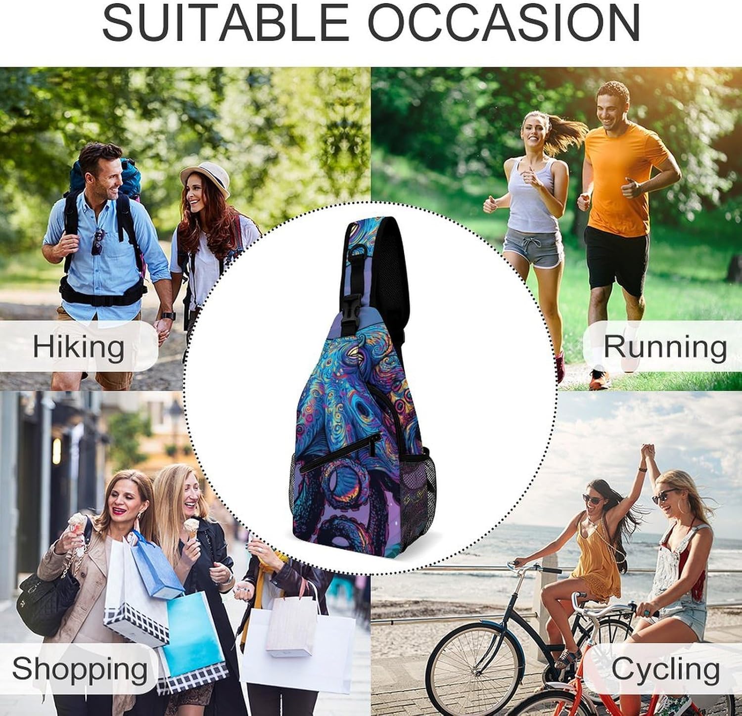 Versatile: This sling backpack makes it highly comfortable and convenient to carry and organize your gear. Suit for Hiking, Hunting, Fishing, Camping, Climbing, Travel, Beach, Running, Walking, Shopping, Trekking, Gym, Trips, Outdoor, Cycling, Motorcycling, Work, Office, and Business