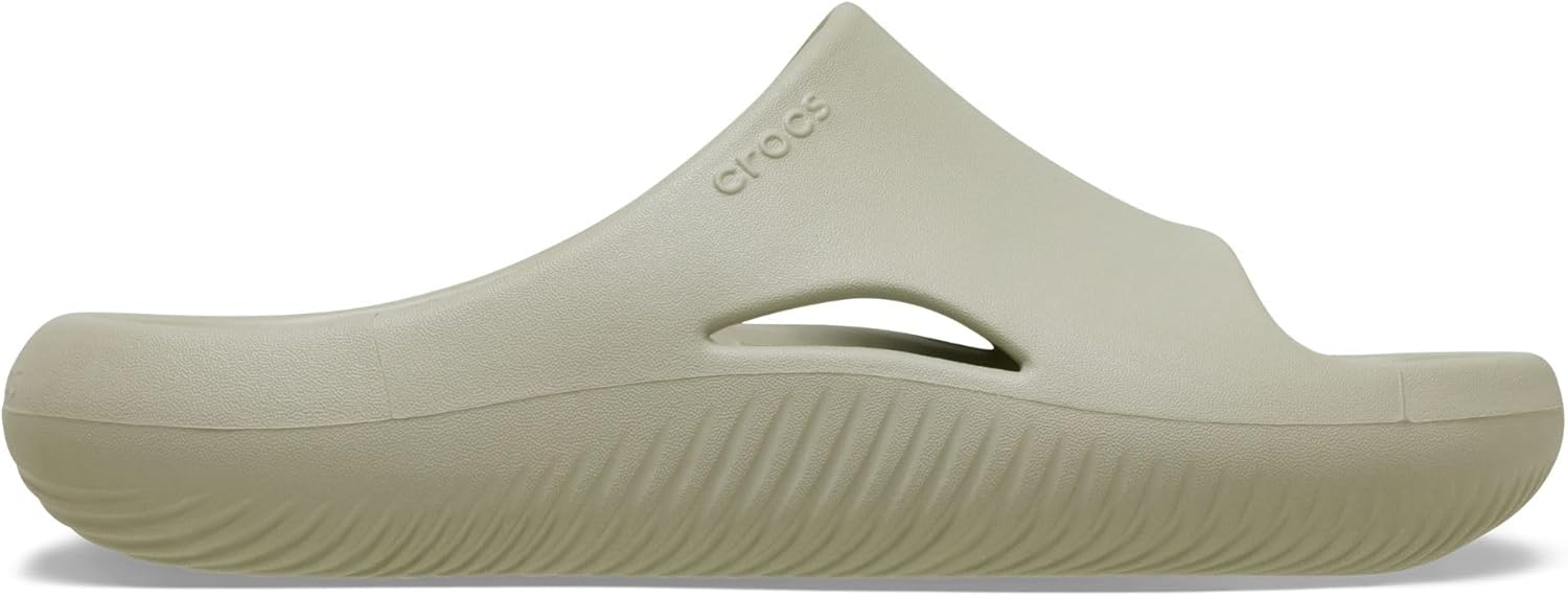 You just got home from a long day, sink into the couch, and relax with an “ahhhhh”. That’s the feeling the Crocs Mellow Recovery Slides brings to the mind and body. Kick back and relax in the most comfortable slides yet, with a simple yet modern design. This mood-boosting silhouette creates the bliss found in pure comfort with an innovative blend of soft LiteRide foam that lets your feet melt into the footbeds. Mellow out with the squishy comfort of the Mellow Collection. Ethylene vinyl acetate upper and insole. Unlined. Pure Bliss in Every Step: Unwind with the Mellow Recovery Slidethe epitome of comfort in recovery slides for women and men. With deep, cupped footbeds offering sink-in comfort and a slow rebound, these slides redefine relaxation. Breathable Relaxation: Indulge in the Mellow Collection’s upper windows, enhancing breathability with each step. These recovery slides go beyond traditional footwear, offering a revolutionary experience in comfort. Find Your Size: The brand recommends sizing down one full size (If you are an 8, size down to a 7). Let the contemporary upper and modern styling elevate your downtime, providing a sleek and simple aesthetic. Slip-on style. Open, round toe silhouette. Ethylene vinyl acetate outsole.