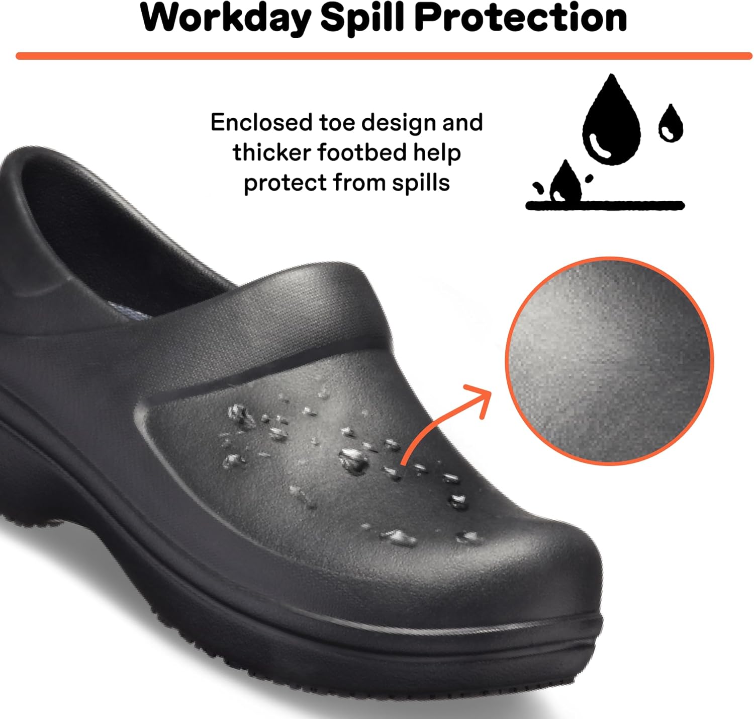 Who is neria? She’s dependable and ready to make the rounds with protection and comfort every step of the way. She also enjoys showing off a bit of her colorful personality with tasteful graphics. Designed for a relaxed fit, and this updated style includes removable, washable footbed liners. Perfect for workers in healthcare, restaurant, retail and any other demanding “on your feet” industry. Try neria on your next shift, or at home in your own kitchen, garden, or anywhere you like to clog.