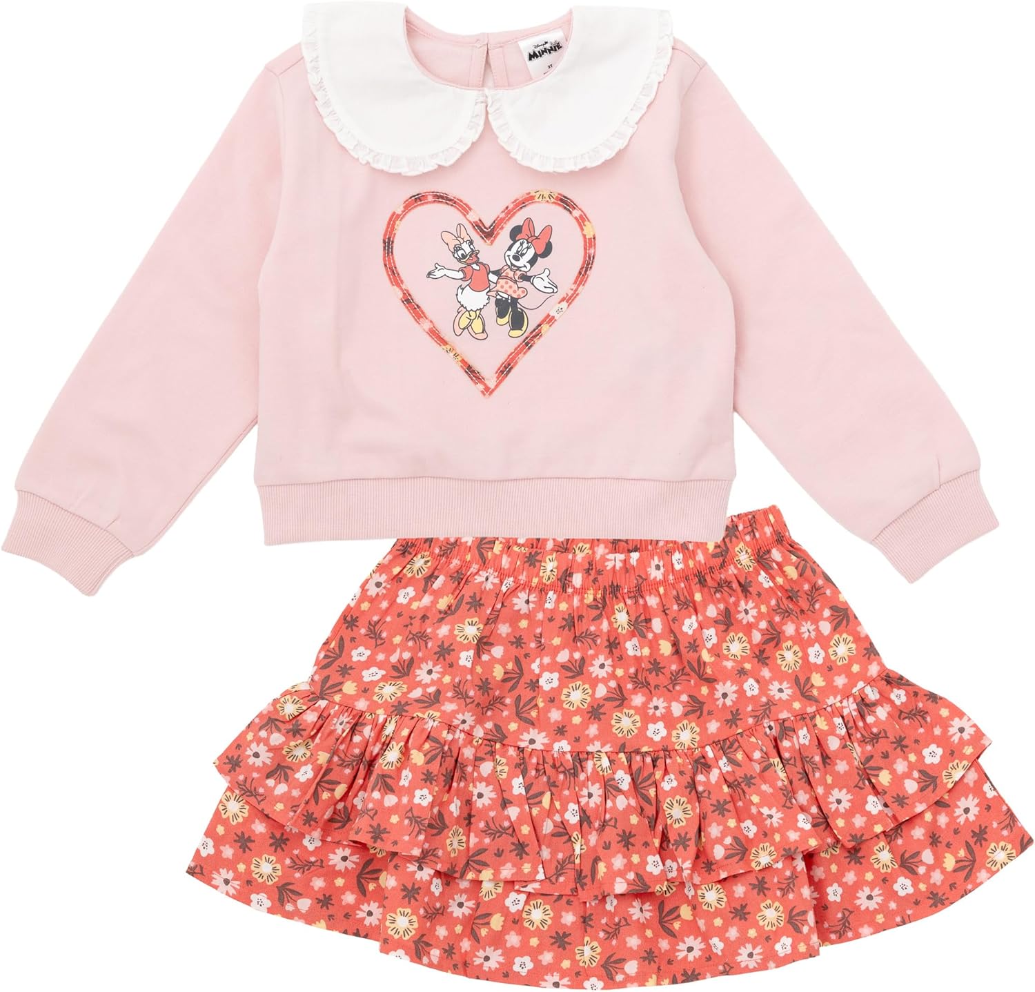 Get your little girl ready for a day of adventure with this adorable Minnie Mouse or Moana Floral outfit set. The cozy fleece sweatshirt features her favorite Disney characters and is perfect for cooler weather. The ruffle skirt adds a touch of girly charm and completes the look. Available in toddler to big kid sizes, this outfit set is sure to be a hit with any Disney-loving child. Let her show off her style and love for Disney with this cute and comfortable outfit.