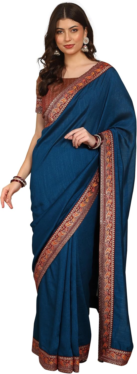 Dupion Art Silk Light weight Saree with Rich and contrasting Border & Unstitched Brocade Blouse – Elegant Indian Ethnic Wear for Women – Affordable Luxury Saree for Weddings, Parties & Festive Occasions