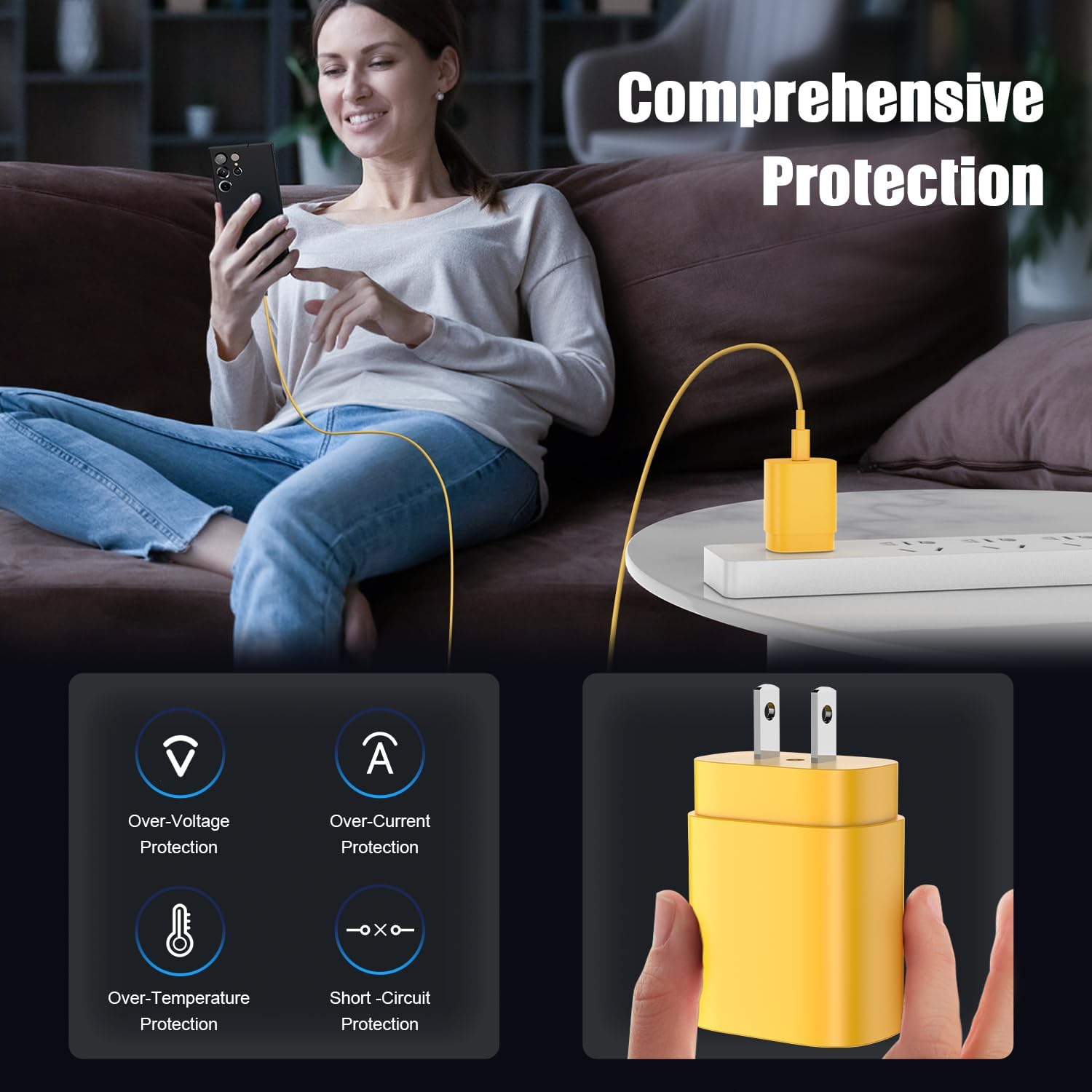 Essri Type C Charger Fast Charging for Samsung Galaxy S25/S24/S23/S22/Note 20,4Pack 25W Super USB C Fast Charger Block with (6ft+10ft) x2 Cables for iPhone 15/16 Pro Max/Plus, Android Phones-Yellow