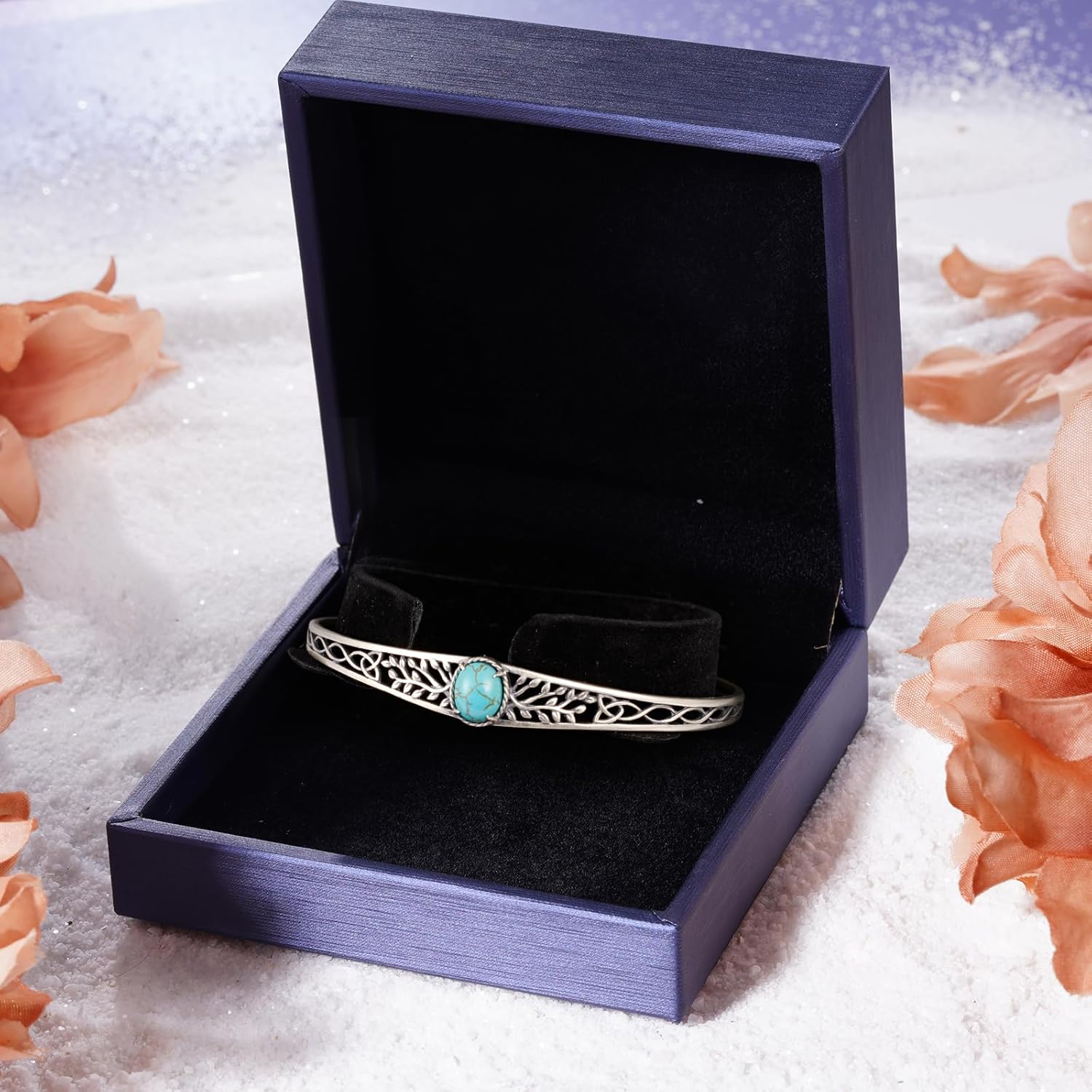 Genuine Turquoise Bracelets 925 Sterling Silver Turquoise Bangle Cuff Bracelets Tree of Life Bracelet Vintage Nature Gemstone Jewelry Real Turquoise Jewelry for Women