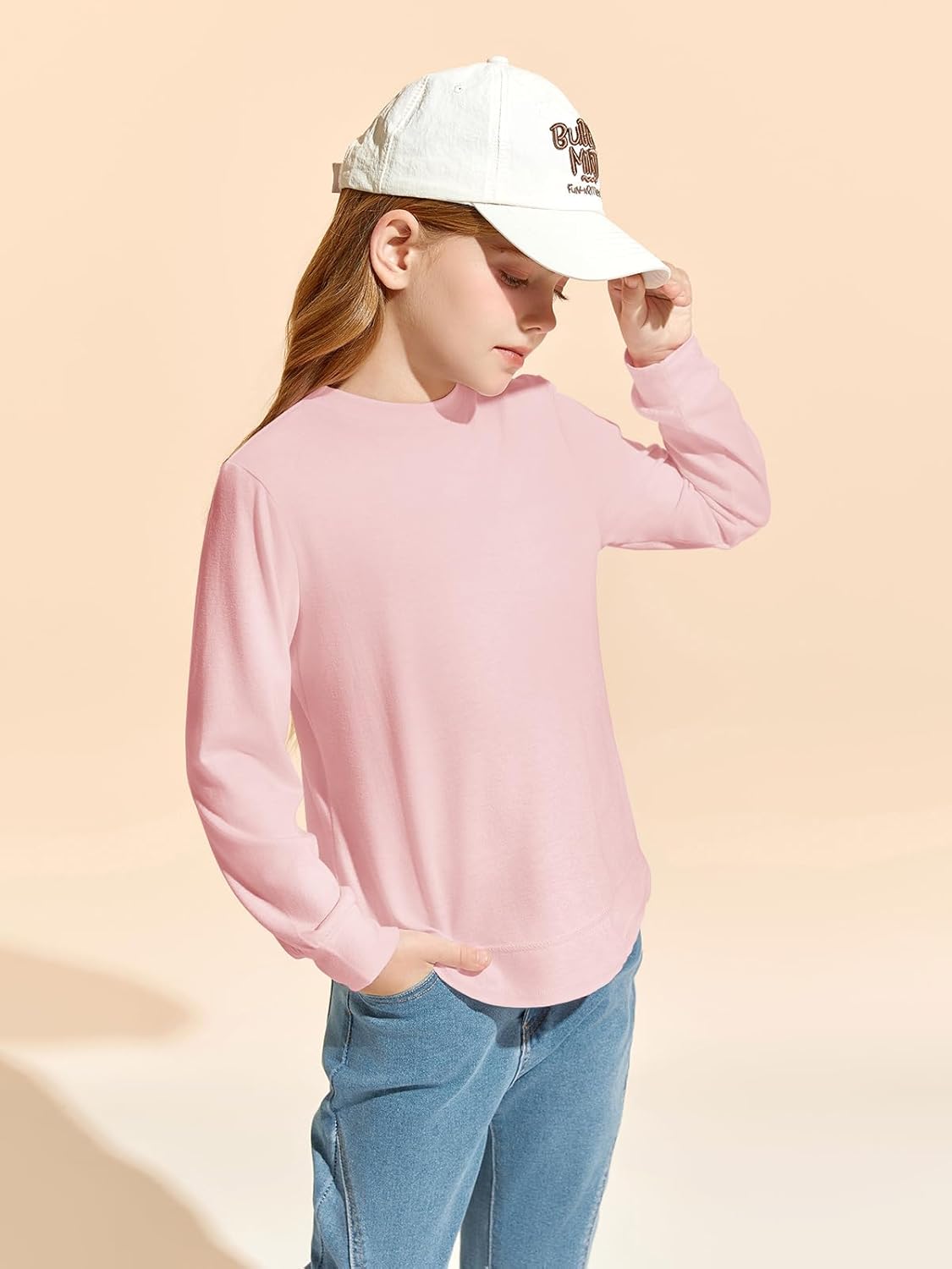 Girls Long Sleeve Round Neck Shirts Kids Cute Basic Tee Fall Tops Outfits Clothes 2024