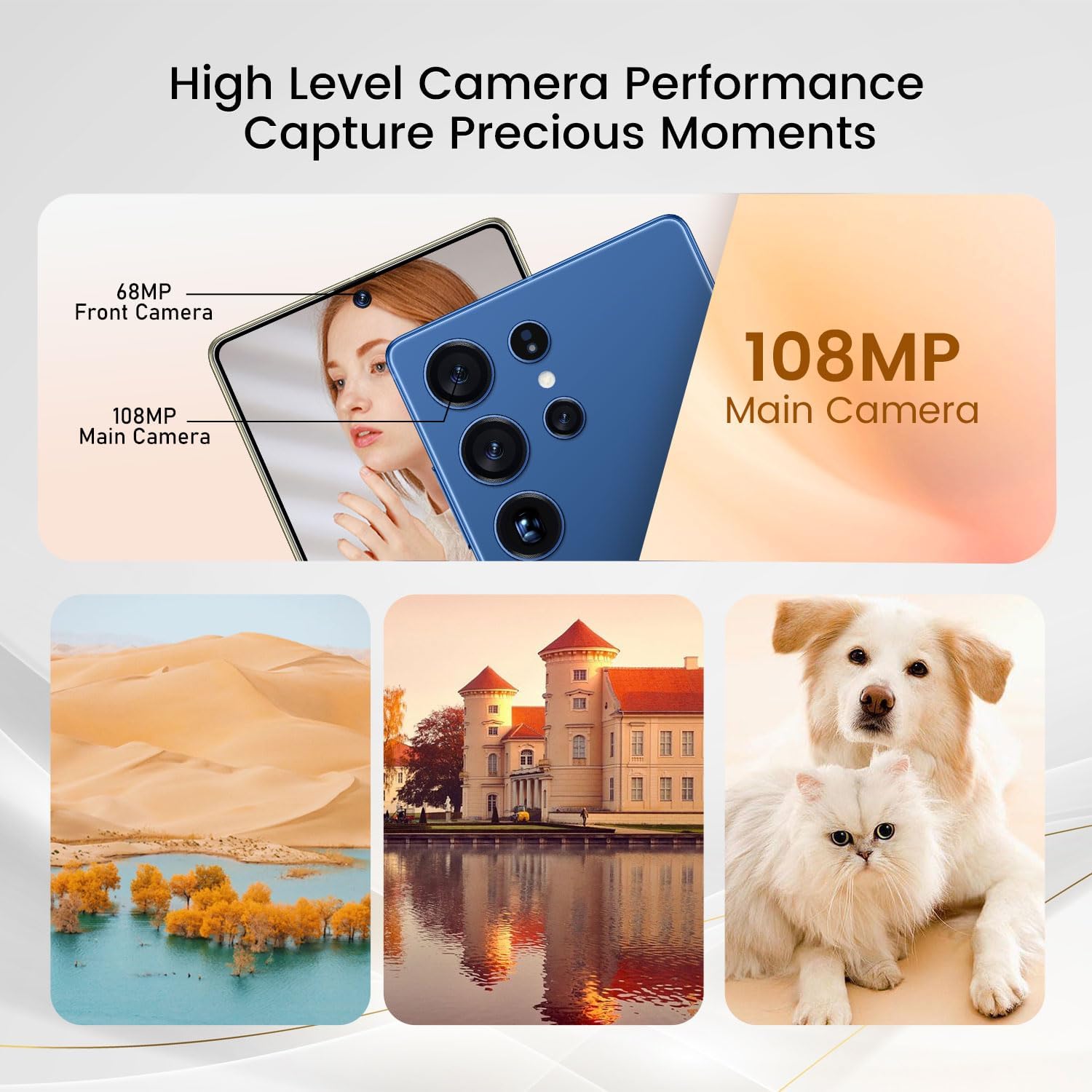 Professional-Grade 68MP + 108MP Dual Camera System: Capture breathtaking photos and videos like a pro.The advanced dual-camera system features a primary 68MP Ultra-High Resolution sensor that captures incredible detail, even in challenging lighting, and allows for lossless zoom.The secondary 108MP sensor excels in ultra-wide shots, macro photography, or depth sensing for stunning portraits with beautiful bokeh. Expect sharp, vivid images day or night, vibrant video recording, and versatile shooting modes that put DSLR-like quality in your pocket. Capture every moment with unparalleled clarity and creativity.