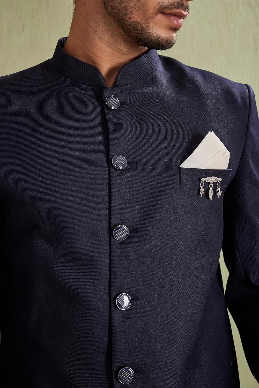 Indian Designer Wedding Festive Wear Solid Poly Viscose Blend Indo-Western Sherwani Pajama Set For Men