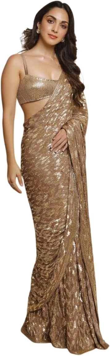 Indian Trendy Women’s Bollywood Sequin Embroidered Sari Festival Saree Unstitched Blouse Piece for women