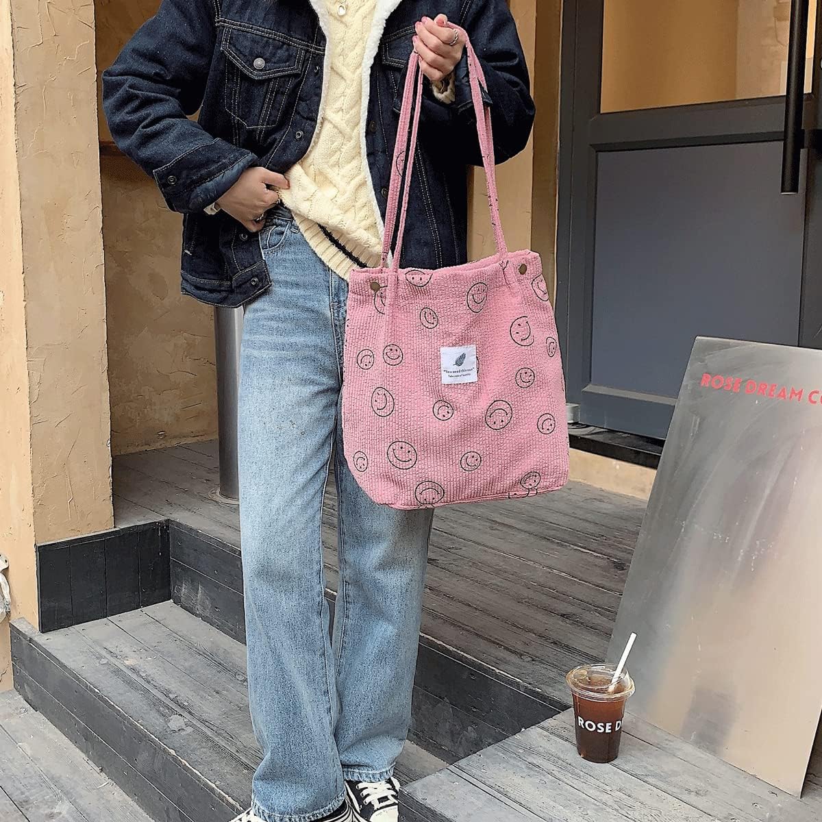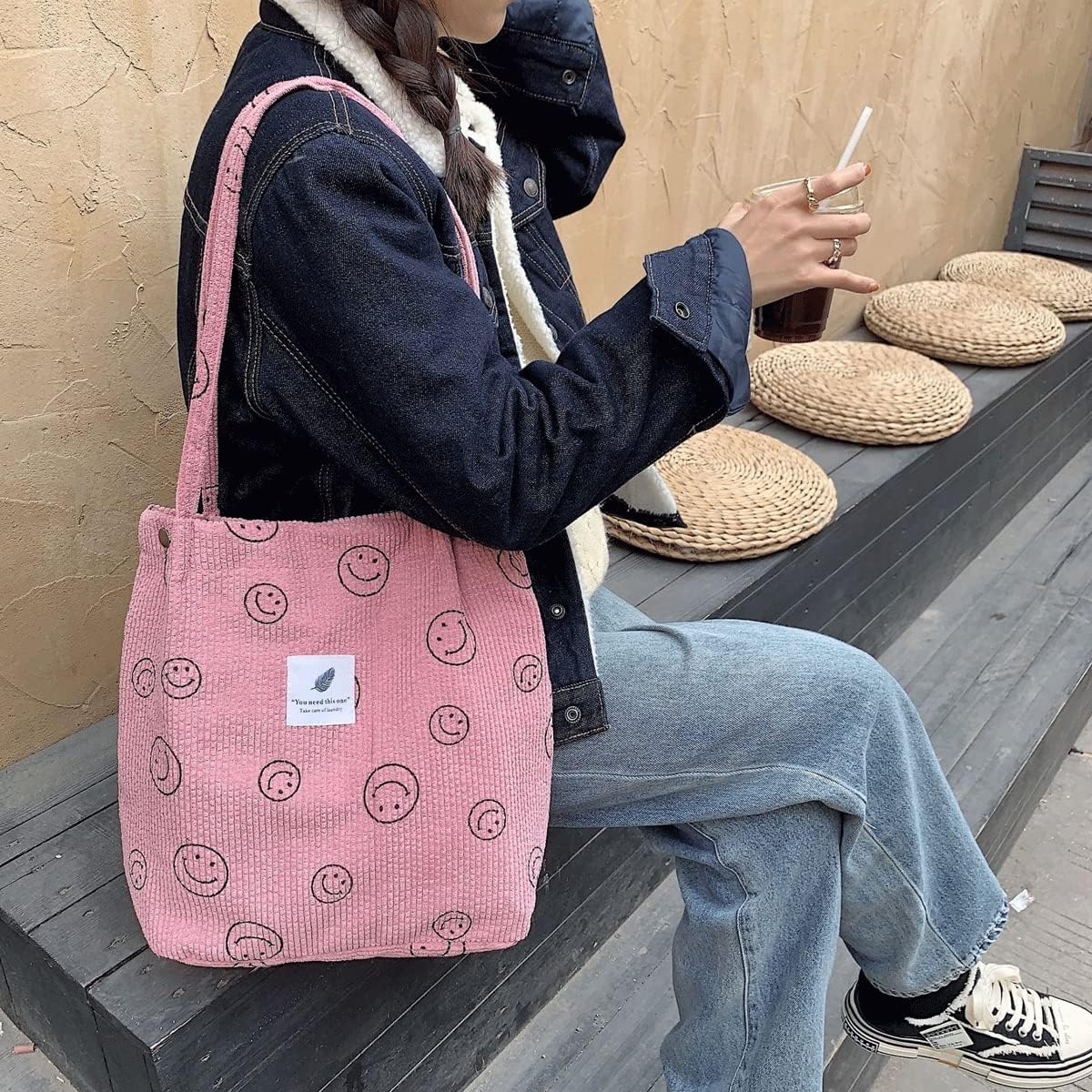 JARKJARD Corduroy Tote Bag Aesthetic Cute Tote Bags Large School Shoulder Bags for TeenGirls Trendy Stuff