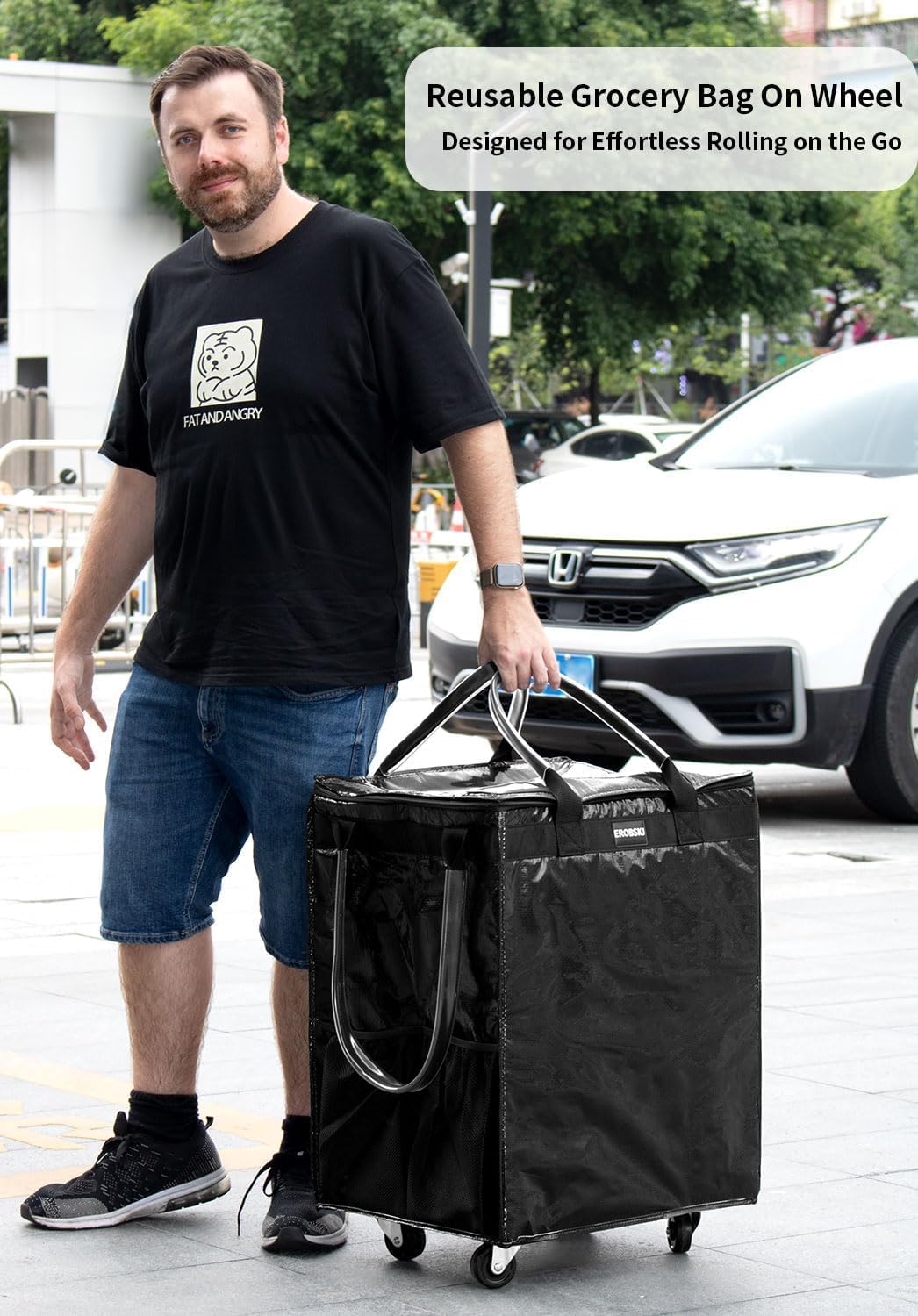 VERSATILE & SPACE-SAVING: Perfect for Travelers, and busy parents, this Bag On Wheels offers ample storage for groceries, travel essentials, or picnic supplies. It also folds compactly for effortless storage when not in use, making rolling tote with wheels and handle an ideal choice for any occasion.
