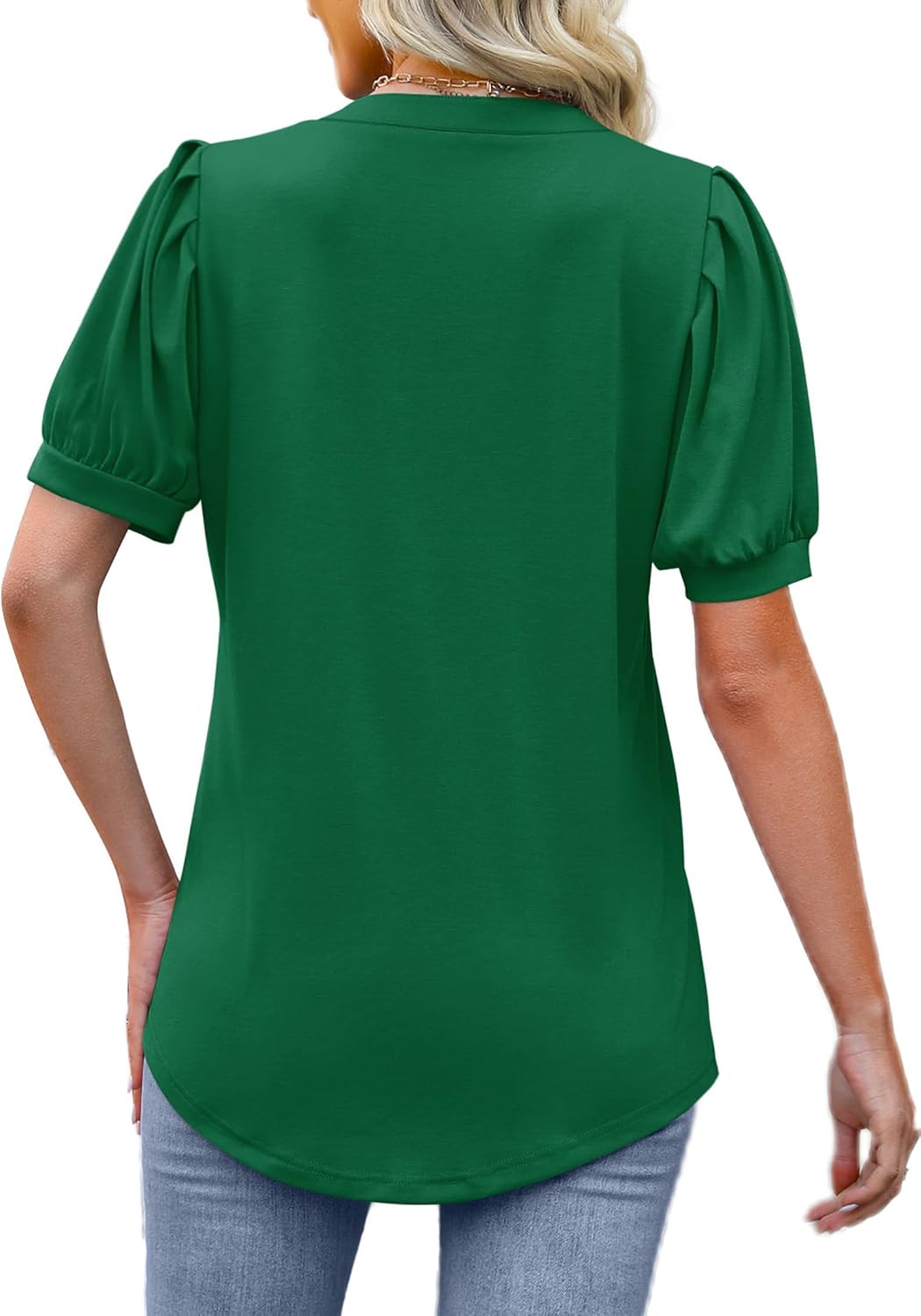 Womens Dressy Casual Tops, the ultimate addition to your summer wardrobe! These tunic tops are designed with a curced hem, providing a flattering and stylish silhouette. The pleated puff sleeve adds a trendy element to these basic knit shirts, making them perfect for any occasion.