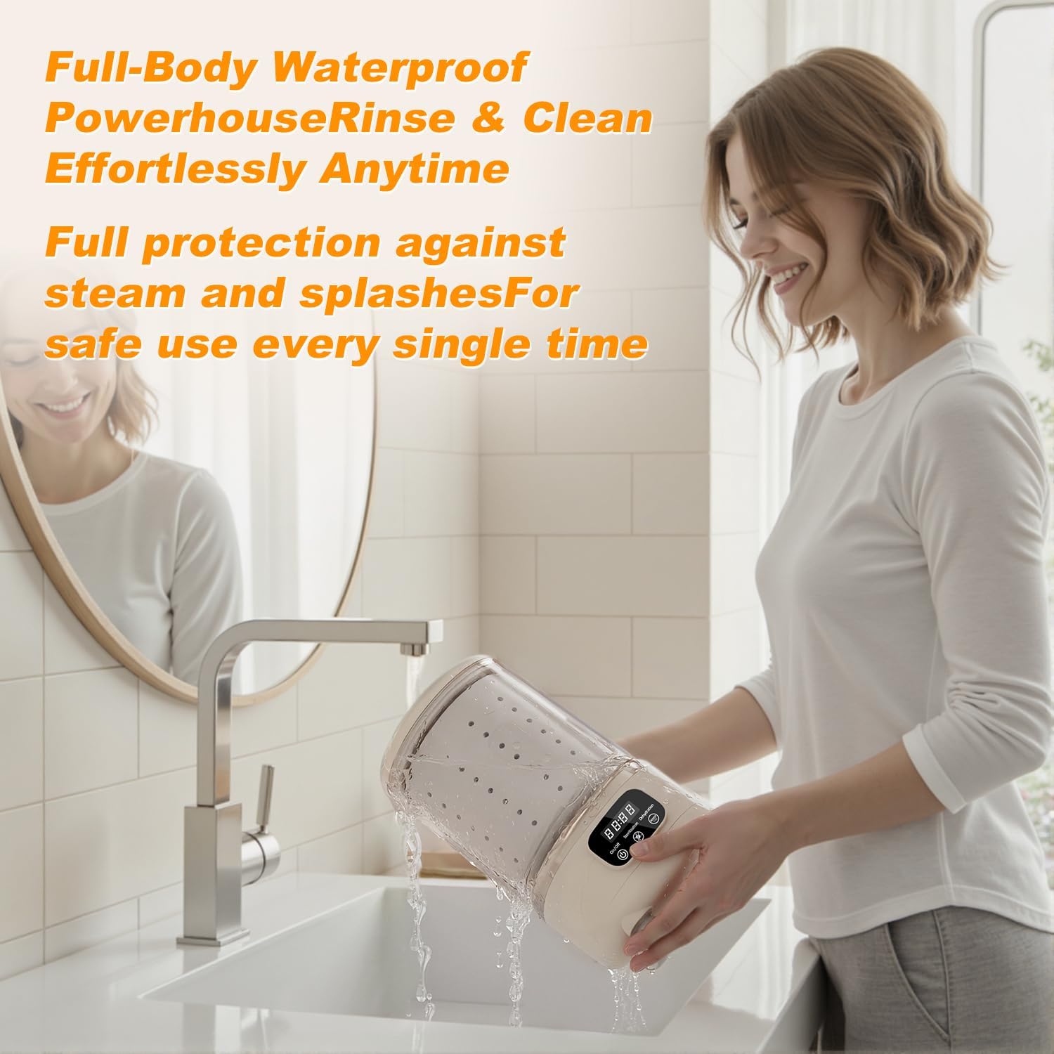 Compact & Easy to Store:Equipped with an upgraded 1000-RPM high-speed turbine motor, featuring a built-in 3000 mAh rechargeable battery + USB-C charging cable. This compact portable mini washer features a space-saving design that tucks neatly into dorm storage compartments, RV drawers, or suitcase compartments after use. Perfect for dorm rooms, RV trips, camping trips, or small living spaces, it fits seamlessly into diverse lifestyles without taking up extra room.