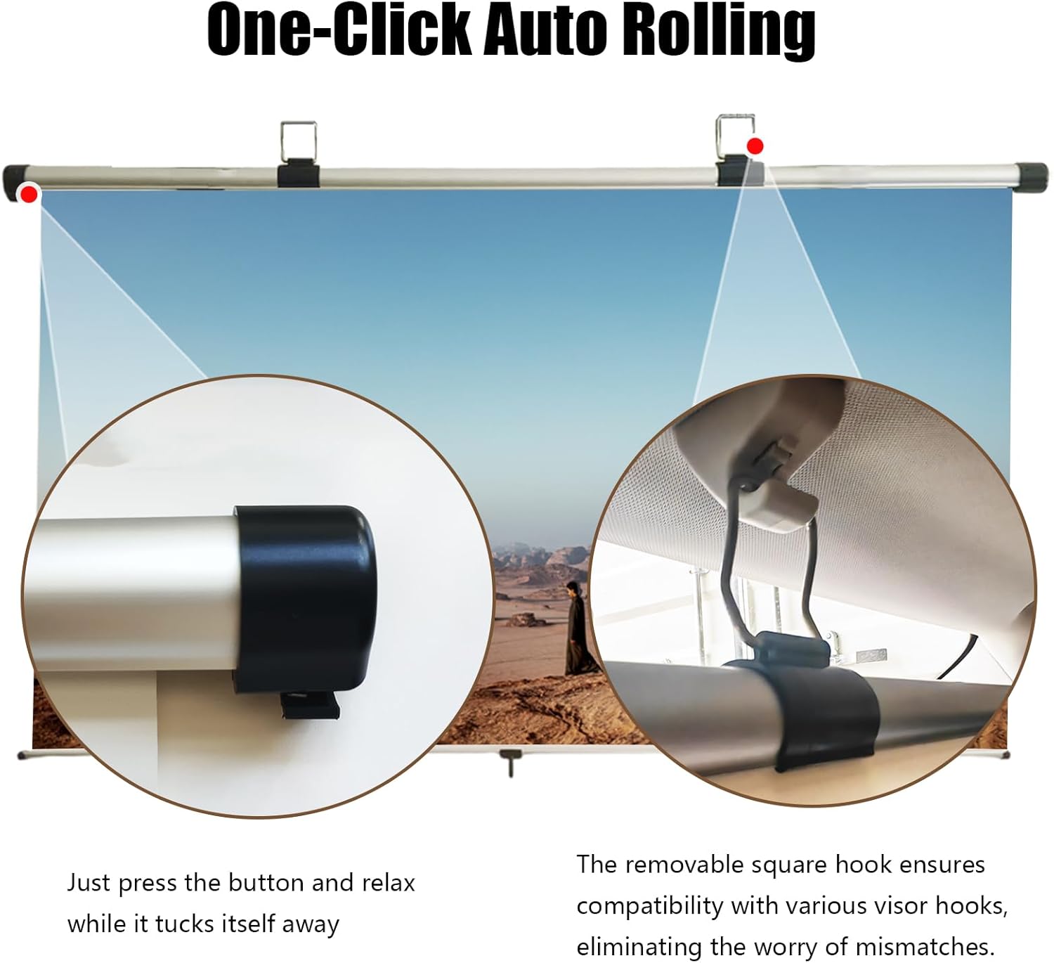 Portable Projector Screen for Car, 40 inch 16:9, Pull Down and Auto Rolling, Foldable and Small, Retractable Projection Screen Mini, 4K HD Screen for Car, SUV, RV and More (One-Click Auto Rolling)