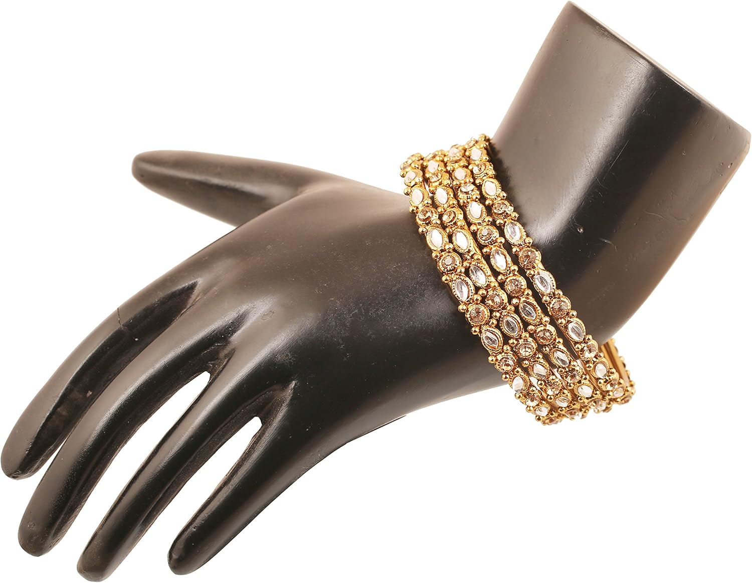 Touchstone “Golden Bangle Collection Indian Bollywood Rhinestones Grain Work Designer Jewelry Thick Bangle Bracelets for Women in Antique Gold Or White Tone.