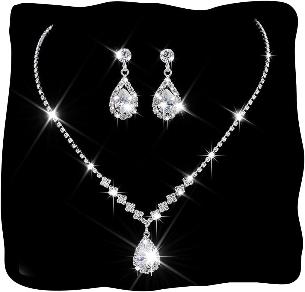 The personalized jewelry necklace and earrings bracelet set has a unique design, highlighting your fashion taste and personality. This rhinestone necklace earrings bracelet set in European and American fashion sways and attracts, making you the most eye-catching focus at your prom or wedding. Stunning and classic Wedding Jewelry Sets for Brides is an exquisite choice for the perfect accessory to complement your bridal look. Designed with elegance and sophistication in mind, this set includes a dazzling necklace earrings set, crafted with sparkling rhinestones that will catch every ray of light on your special day. Exquisite and fabulous bridal necklace earrings in creative design and excellent workmanship, is not only a must-have hair accessory for your wedding but also a craft that deserving your collecting! Whether it’s a prom, gala, or anniversary celebration, masquerade, victorian, quinceanera, birthday, carnival, homecoming jewelry set paired with a bling necklace for women or a diamond necklace earrings set in European and American fashion sways and attracts for women will make you the star of the evening. Wedding necklace set versatility makes it an nice accessory for any occasion where you want to make a statement with your outfit. Bling necklace sets for women will add more charm for your outfit and make you look elegant.Bride jewelry set for wedding day is lightweight and comfortable, making it nice for all-day wear.